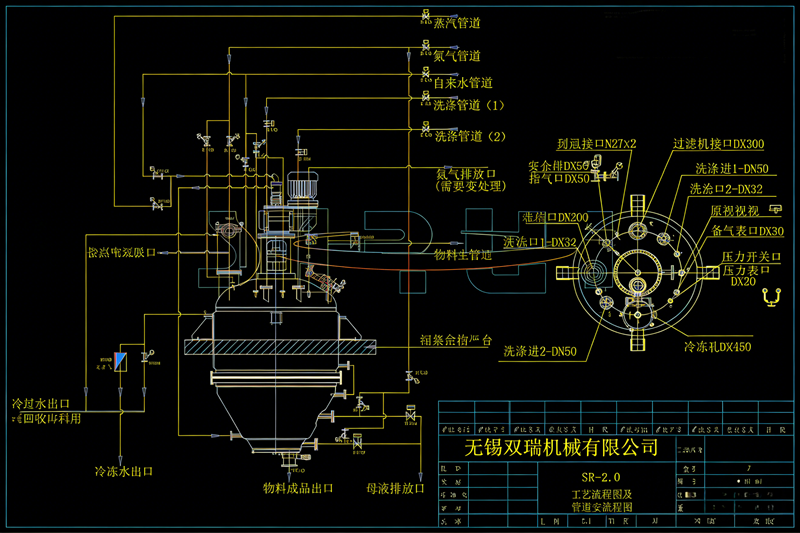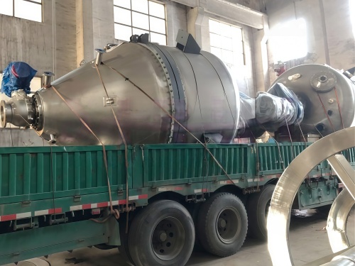 有些物料过滤完以后,还要进行多次洗涤。反应过滤干燥多功能机用于对物料的反复多次洗涤是理想的设备。物料在机内压干后,可在顶部洗涤液入口加入洗涤液, 然后通过空心轴和空心螺带的搅拌,对滤饼进行均匀再浆,再浆搅拌均匀后再把物料压干。若洗涤一次不够,可进行多次洗涤,这时重复上述步骤多次即可,操作方便,劳动强度极低。