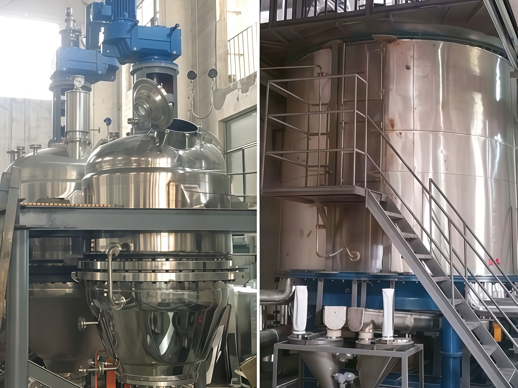 (2) 溶剂萃取,去除低聚物(物料转移:胶体磨→过滤洗涤一体机,自动管道输送,全密闭操作)