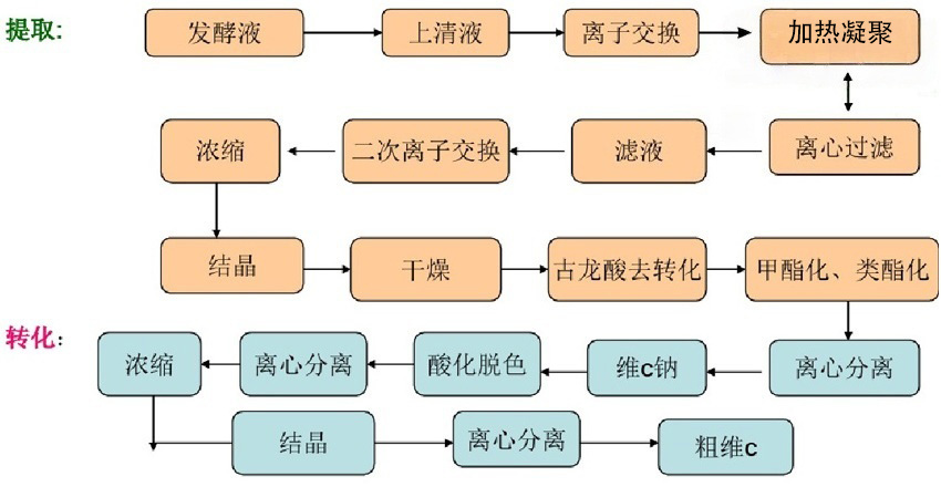 维生素C制取目前通用的方法为硫酸酸化法和离子交换法,其中硫酸酸化法已基本淘汰,离子交换法已成为目前主要生产工艺。通常离子交换工艺是将维生素C钠用水溶解后,溶液经过阳离子交换树脂去除钠离子,生成维生素C溶液,经减压浓缩、冷却结晶,离心分离得粗品维生素C,再精制结晶得成品维生素Co阳离子交换树脂的使用过程会耗用大量的自来水,及排放大量的废酸、废碱,对环境污染严重,不符合清洁生产的要求,同时这种离交方法制得的维生素c溶液浓度较低(15~20%),需经过大量的蒸发浓缩才能制取粗品维生素C,这使得整个工艺周期长,产品易于变质,粗品维生素C质量差,收率低,能耗高,设备投资多,成本高。