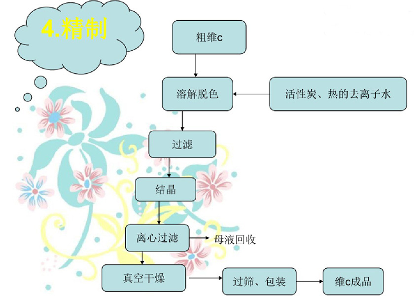 结晶过滤洗涤干燥四合一精制提纯维生素C工艺以维生素C钠为原料,采用全自动多功能过滤洗涤干燥机进行制备高纯度维生素C的新方法,以克服现有技术存在的不足。具体工艺步骤为: