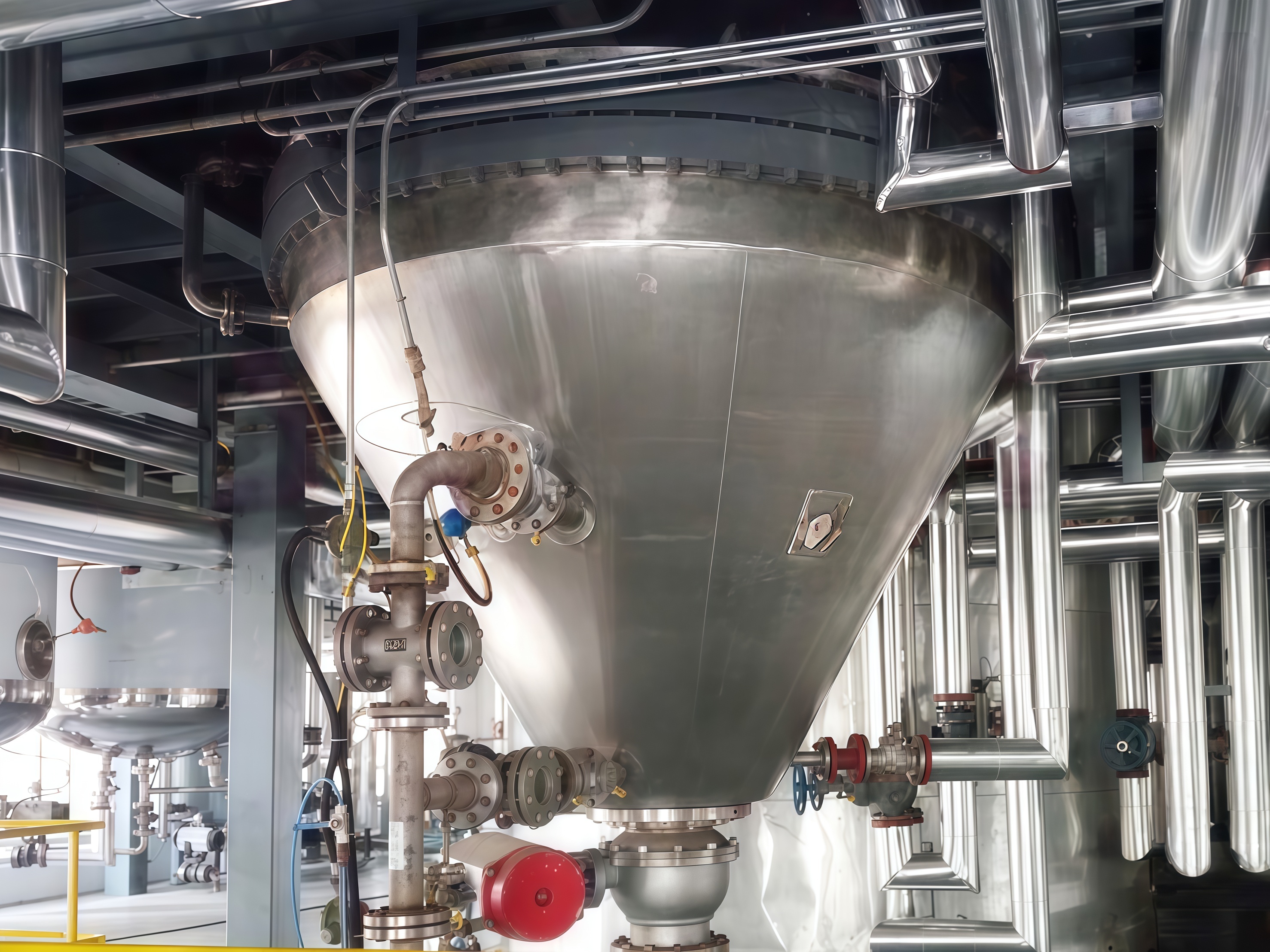 维生素C又名抗坏血酸,是一种人体自身无法合成而又必需的一种物质,与人类健康有密切的关系。我国是维生素C生产大国,在全球所需的8万t/a维生素C中,我国的供应量达到50%以上。维生素C是一种高能耗产品,随着国际市场上维生素C价格的暴跌,降低维生素C生产中的能耗(特别是维生素C干燥过程中的能耗——占整个维生素C生产能耗的30%以上)已成为生产企业生存的关键。在维生素C生产中干燥是一个很重要的步骤,以前常采用双锥回转真空干燥器进行干燥,但该干燥器存在不能连续生产、物料受热不均匀、能耗高、操作复杂等缺点。