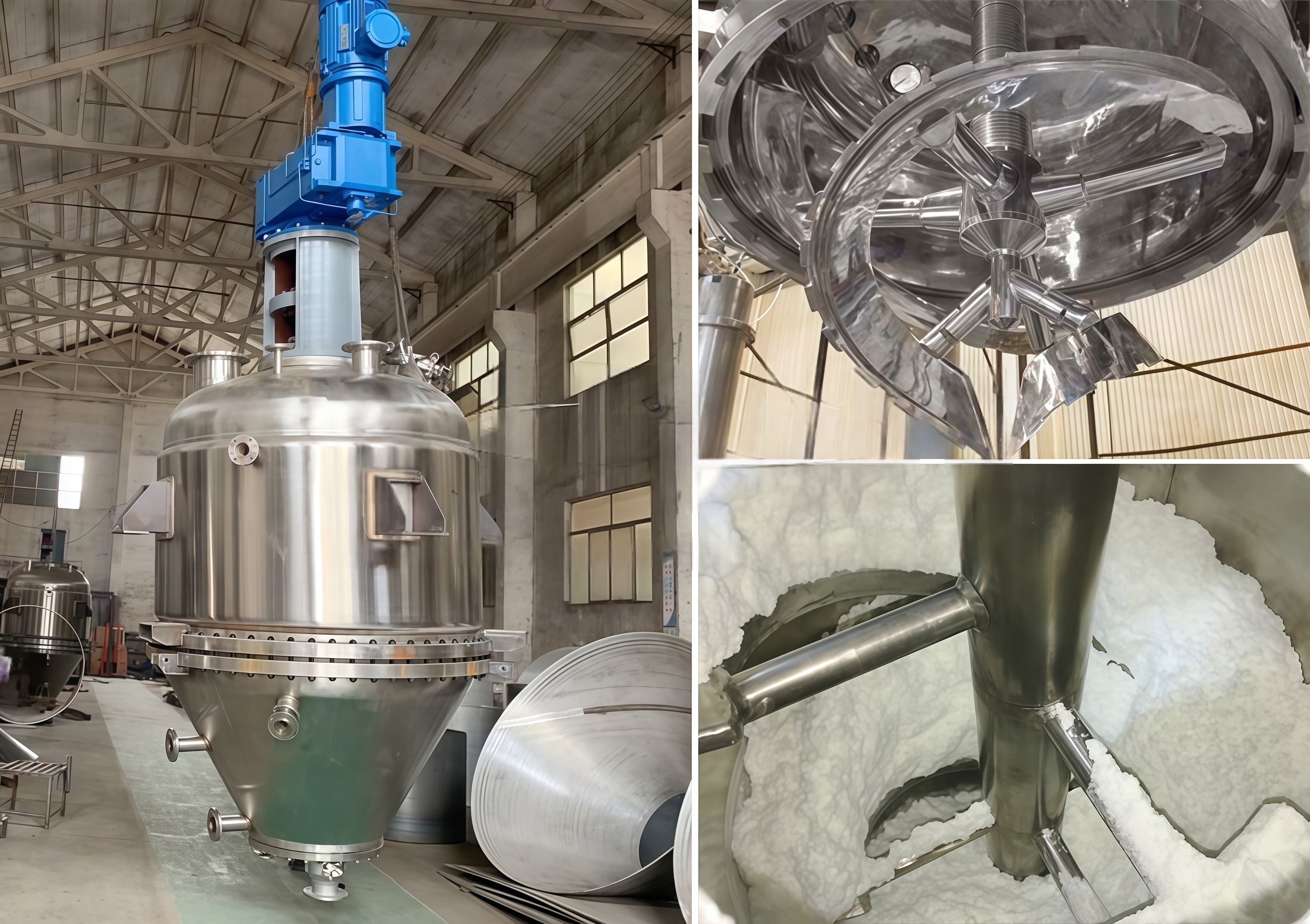 ⑥ 可用于反应、过滤、干燥三种操作,使三个单元设备的作用在这一台设备上完成,从而使设备成本、占地面积、劳动强度、能耗等都大大降低。