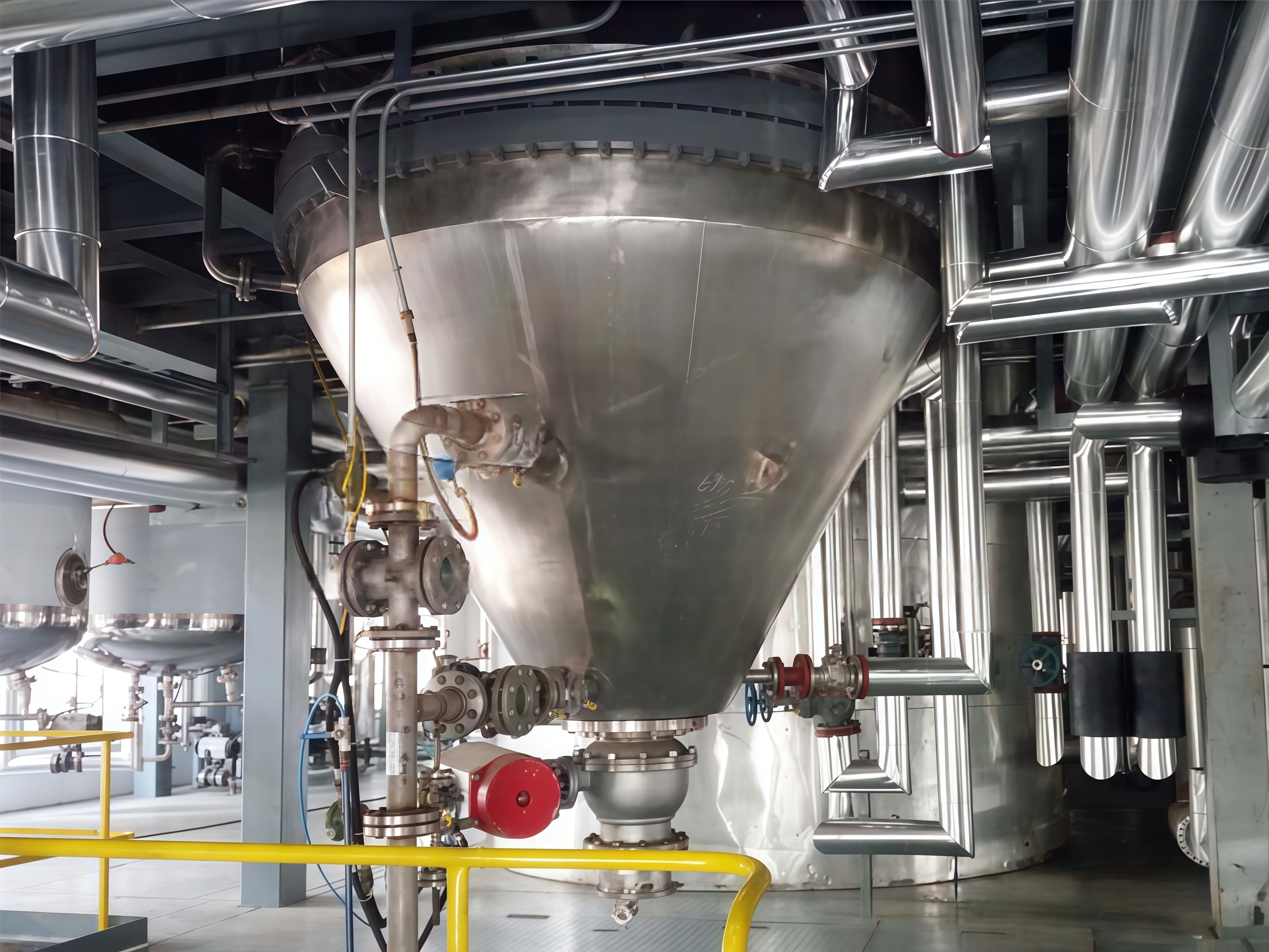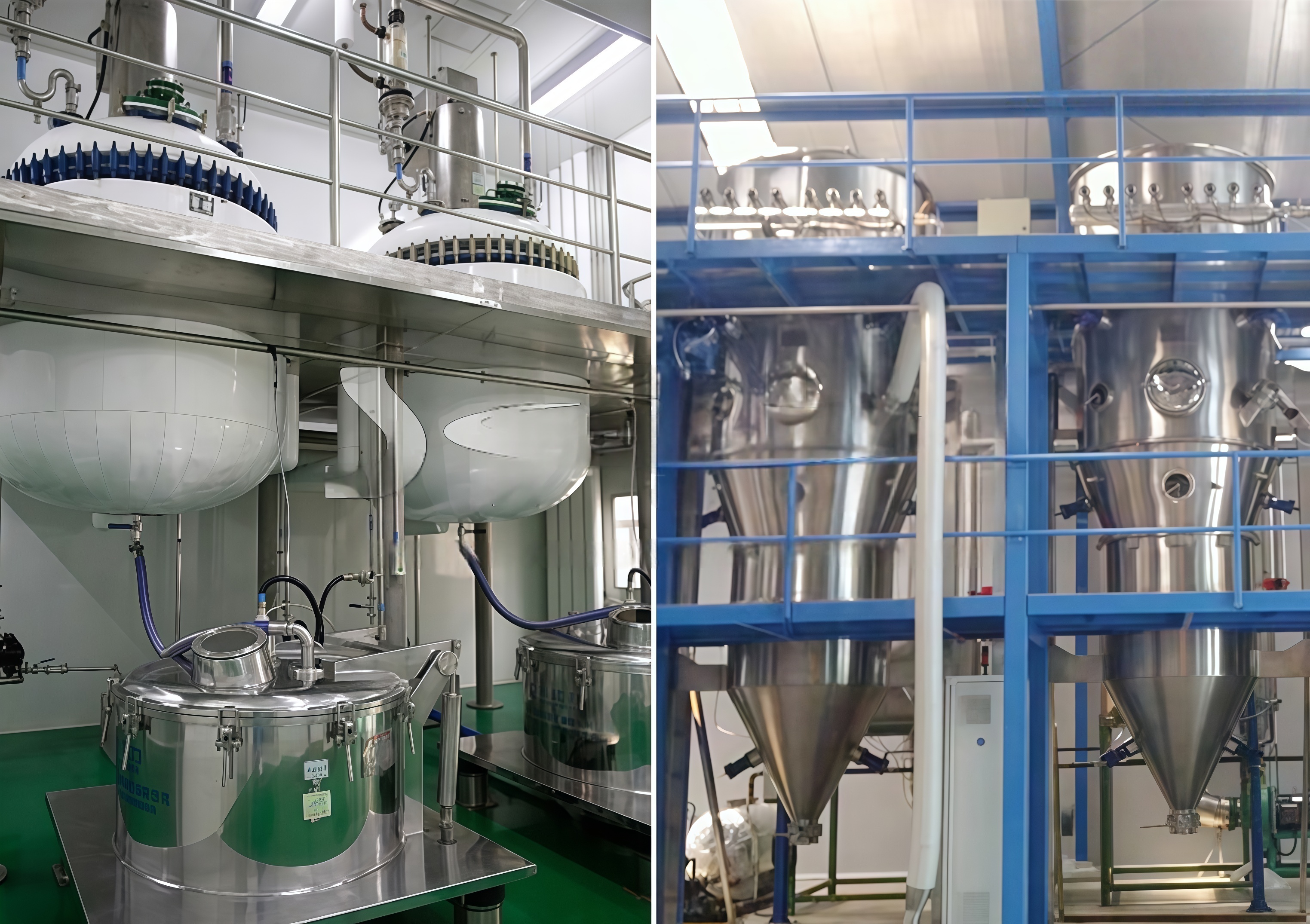 从结晶开始到干燥结束的全封闭生产流程,该套设备是一个全封闭运行的系统,生产流程更加符合GMP要求规范,消除了粉尘挥发因素,使异物污染得到控制、降低了微生物污染的风险。