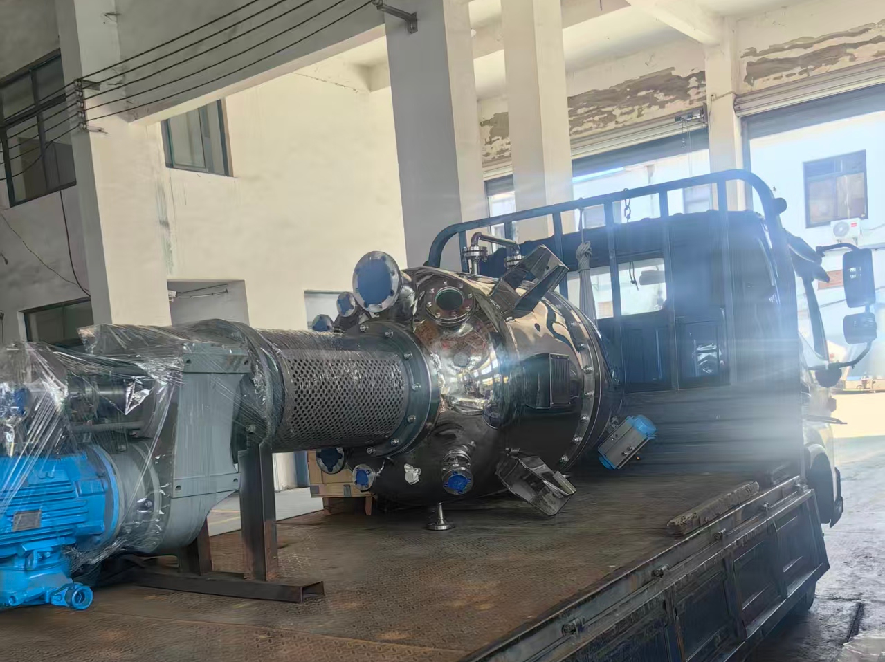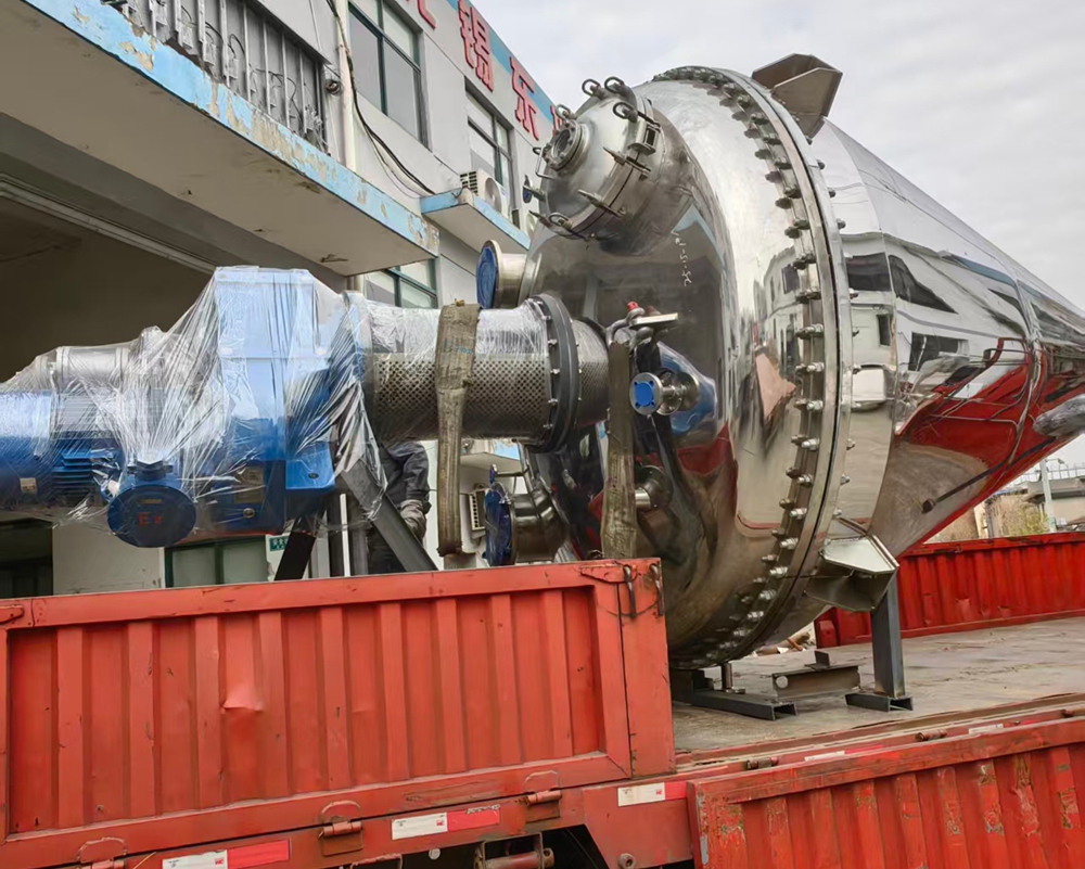近日,由我司为山东某知名水处理药剂生产企业专项设计、制造的两台4000L大型单锥真空干燥机已完成全部厂内测试与验收工作,并于今日正式装车启运,发往客户生产现场。