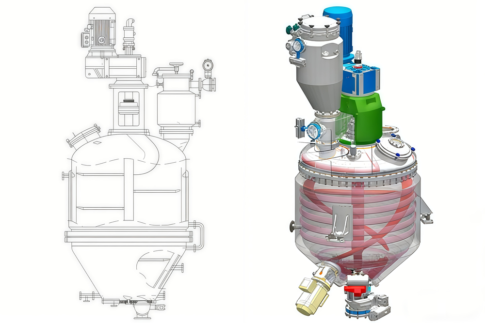 真空单锥干燥机设计时,其中一个重要的组件是它的搅拌器。要选择具有正确特征的正确搅拌器,必须了解进料的属性以及工艺要求的真空干燥流程结果。