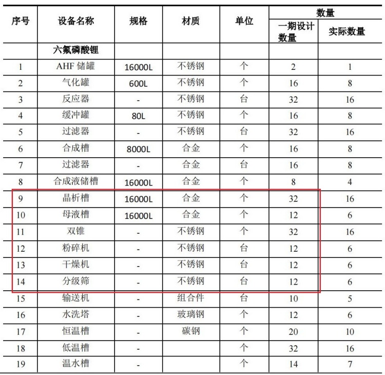 (1) 过滤:合成结束后液体经过滤去除少量不溶性杂质(主要为氟化锂带入的少量钙、铁离子形成的磷酸盐类),进入合成液储槽,过滤为重力自然过滤,然后合成液使用泵通过不锈钢管道输送到晶析槽,此工序产生滤渣。过滤液中溢出的少量HF进入废气。