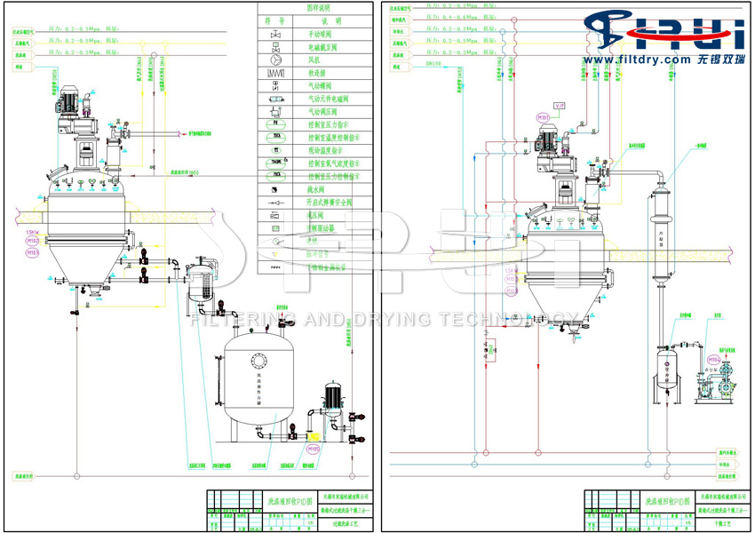 为克服上述机组设备组合存在的问题和不足,满足化工向高品质、高附加价值、多品种、小批量的转变,无锡双瑞进行了大量的设计研究开发,终于开发出集过滤、清洗、干燥为一体的多功能锥形结晶过滤洗涤干燥一体机(专 利号:ZL 201721560677.6),实现了装备技术性能的大幅改善,从结构设计应用该设备具有过滤、洗涤、干燥三个主要功能,还兼有反应、萃取、结晶、浓缩、蒸发、混合、破碎等多项功能,而且在多家客户企业中应用。