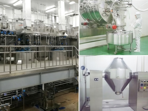 (7) 设备优化干燥工艺流程,采用预干燥、强干燥及冷却工序。预干燥段中采用了大风量、高风压风的设计,使得具有粘性的湿颗粒得到迅速分散及表面预烘干;干燥段采用低风量,高温度风进行恒速干燥。这样,使物料在不同的状态都能有合适的干燥温度和干燥风量,从而达到理想的干燥效果。