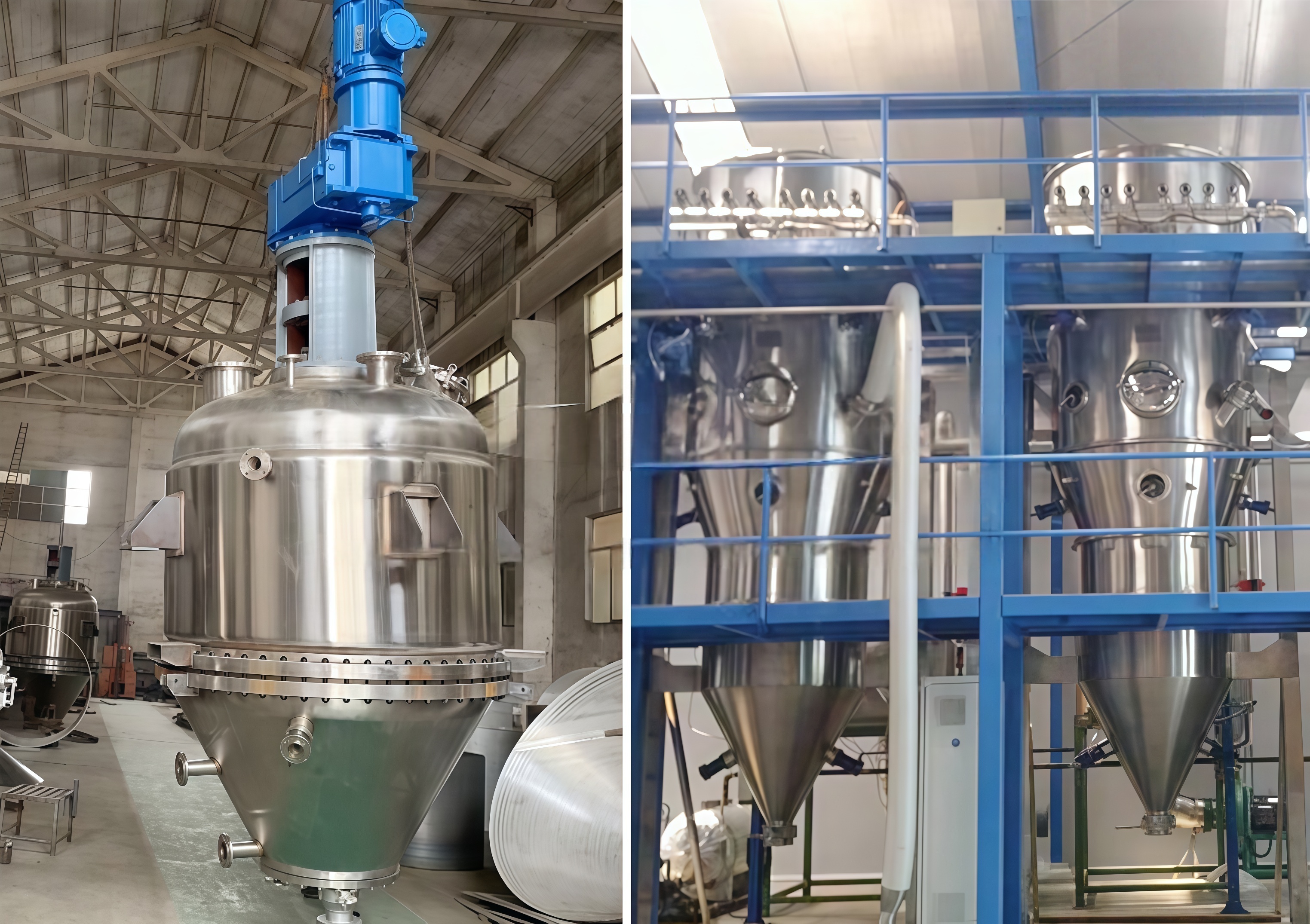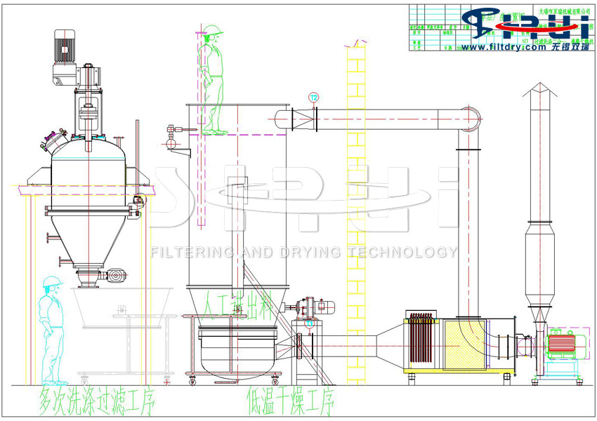 原料药、农药、染料及其它精细化工生产过程的后处理工序中,一般要有结晶釜、过滤机、干燥机等设备来完成。这些设备单独运作,都有各自的配套装置,占地面积大,造价贵,单元与单元间物料的搬运或输送较麻烦。不但劳动强度大,还易造成物料的流失浪费,生产周期长、能耗大、效率低影响产品质量。