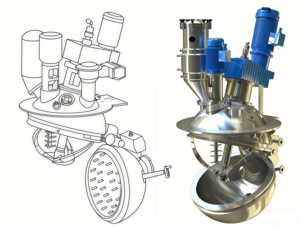 (1) 进料:首先通过球体开合装置旋转下半球与上半球闭合上,物料(料液)称量好后,经真空吸料口进入设备内。
