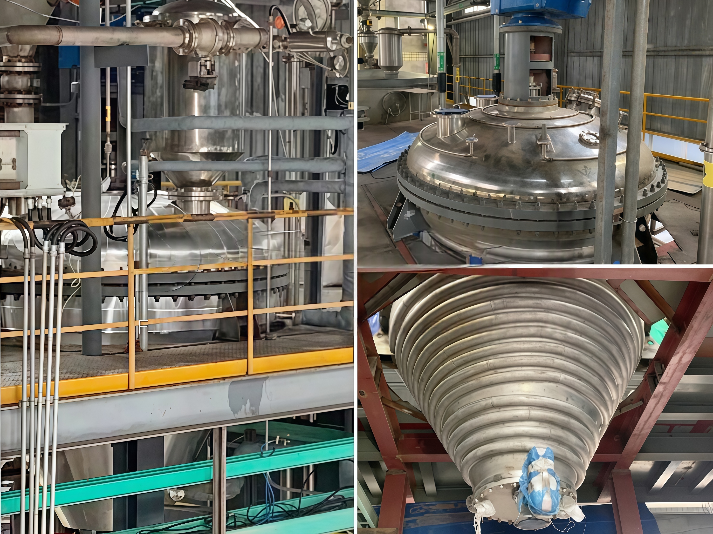 ③ 物料温度变送器、真空真空取样器设置在底板上,降低了锥体加热夹套的制造难度;